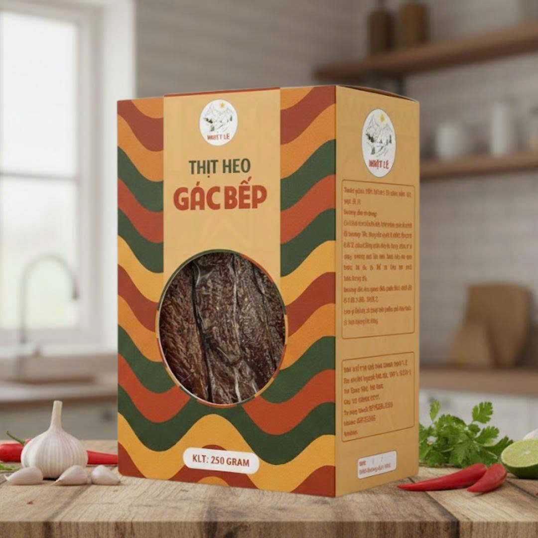 Sản phẩm Thịt heo gác bếp của Nhật Lệ là minh chứng cho sự kết hợp hài hòa: bí quyết gia truyền từ núi rừng Tây Nguyên được bảo tồn và tạo nên một món ăn độc đáo.